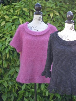 Pattern lists options of short sleeves or mid-length flared sleeves (both pictured). Pattern also lists options of straight or slightly flared hemlines.