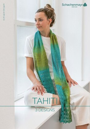Tahiti – the popular summer yarn now with 3 new designs. Lovers of extravagant shawls will be delighted by the openwork patterns, crossed drop stitc