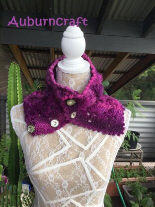 This neck warmer pattern works up quickly and uses one ball of most Aran yarns. Yarn used for pattern is Red Heart Unforgettable in the colour Petunia. Other Yarns suitable: Lion Brand Ice Cream, Moda Vera Bouvardia or really any Aran yarn, just check gauge.