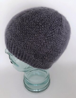To fit 18 - 20, (19.5 - 21.5, 21 - 23)” (45.75 - 51, (50 - 54.5, 53 - 58) cm) circumference head with 3 - 5” (7.5 - 13 cm) negative ease. Sample shown in size medium on a 22” (56 cm) glass head and 21.5” (54.5 cm) modeled picture.