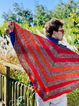 Inspiration The idea for this design for this shawl started whilst in lockdown. I wanted something that would combine simple rhytms along with something a little more engaging with the textures and lace area. The colours were very important it had to shout happiness