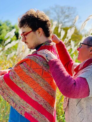 Construction This shawl is knitted with distinct sections. Using a variagted yarn to seperate the lace and textured sections.