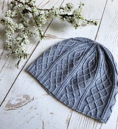 Taking Root, with its panels of twisting stitches that grow from the brim like twisting roots searching out nutrients is the perfect lightweight spring hat.