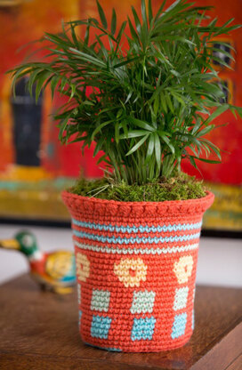 Tapestry Flower Pot Cozy in Red Heart Super Saver Economy Solids - LW4004 - Downloadable PDF
