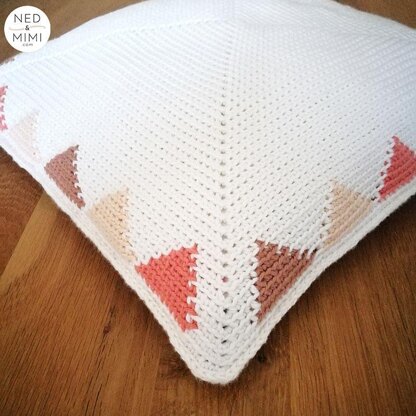 This Tapestry Triangles crochet pillow is worked in the round like a granny square, using single crochet through the back loop only.