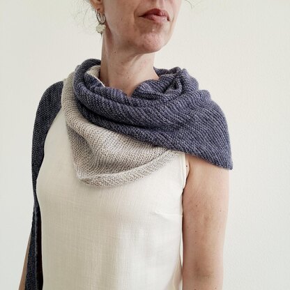 This shawl starts with few stitches, is knitted diagonally and grows until a certain point. The second color is attached and using easy intarsia technique, (given in photo and video tutorial) and short row shaping the middle part will be created. By mirroring this, shawl ends with few stitches. An I-cord edge, knitted with a special technique which is described in pattern creates a nice and elastic edge.