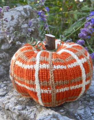 The instructions create a plaid pumpkin measuring about 5.5-inch/14-cm wide and about 5-inch/13-cm high (including the stem).