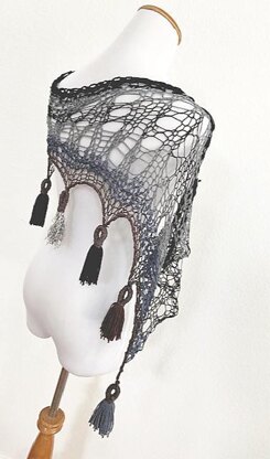 Tasseltastic, a fitting name for this fun shawl. The pattern is written and has a photo tutorial on how to create the fabulously chic tassels. The shawl is a fast and easy knit. It makes the perfect first lace project but will keep experienced knitters happy as well.