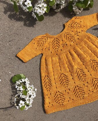 Tatli is a classic dress with a pretty lace yoke and hem. This is knit top down, with short, ¾ length or long sleeves. The lace is charted and written out.