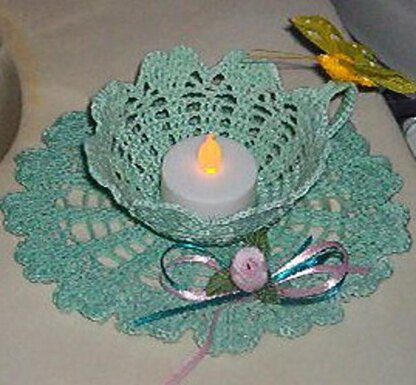 This tea cup shaped holder can be used as a candle holder for a battery operated tea light candle or as a candy dish.