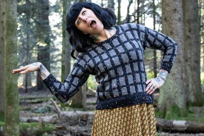 Tea Party is knit mostly in the round, from the bottom up, featuring drop shoulders and an all over mosaic colorwork pattern. It has a boxy, ever so slightly cropped fit, with bracelet length sleeves and a few inches of positive ease. There are ten sizes to choose from, with a few modification options!