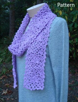 This beautiful fashion accessory is created with motifs that start with a flower in the center and joined together as you crochet. Add a picot edging all around to complete the scarf. For the Intermediate Crocheter, this light weight and lovely scarf is crocheted in a DK weight yarn.