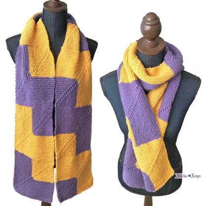 Bundle up on game day with the soft, squishy warmth of the Team Colors scarf. Mitered squares give this scarf its bold, geometric design, and textured diagonal lines. Show your support for your favorite team, wear your school colors with pride, or make one in your favorite color combination!