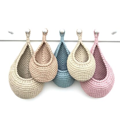 Make a teardrop hanging basket for storage and organization in 3 sizes: Small basket 14x21 cm Medium basket 16x24 cm Large basket 18x28 cm hanging loop 7 cm