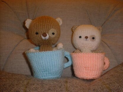 Sooooo cute! Awwwwwwwwwww... Knitted in plain stocking stitch, these little teddies are easy to make and look so adorable in their teacups! The limbs are jointed with yarn so can be moved for posing. Why not make a set in pastels for warmer months and festive colours for later in the year?