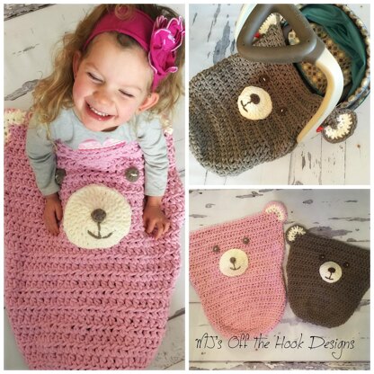 This is a PDF crochet pattern for a snugly Teddy Bear car seat cozy! This cozy is designed to either wrap under the bottom of car seat or stay inside the car seat with babies feet tucked inside the bottom pouch. The pouch will not interfere with car seat buckles! I’ve also included a larger size for bigger car seats. It’s the perfect cozy for your little ones to snuggle up with in the car. They will love the feel of Bernat Baby Blanket yarn and it washes up great too! Like my other blankets I’ve designed this pattern to work up quick! I’ve used a 16mm (Q) hook and a 9mm (M) hook. This is a fun unique blanket that makes the perfect shower gift!
