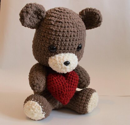 This crochet pattern will help you create your very own cuddly bear! He sits 37cm tall when finished, making him the perfect size for hugging.