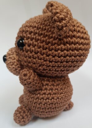 This is the sixth version of my Foxy Friend pattern. I thought it was time for a nice simple teddy bear, and it is probably the easiest and quickest to do so far. I think he’s quite sweet, I hope you like him – or her. I made the muzzle a lighter colour, but it would be fine all the same shade. I could put them all on one pattern but this is simpler and since they are all free I hope you don’t mind! They are all reaching out for a hug.