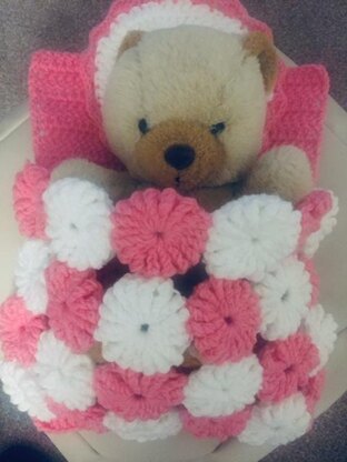*TEDDY BEDDY* is a crochet pattern for a bed for that favourite bear (or doll). The finished size is approx. 18inches. You will need to use 2 strands of DK together, but if you prefer Aran yarn can be substituted. The Teddy Bed can be placed in your child's bed or on top where teddy can sleep snuggled and warm. It's an easy to crochet project and when complete can be packed for holidays or visits to grand parents without taking up too much room!