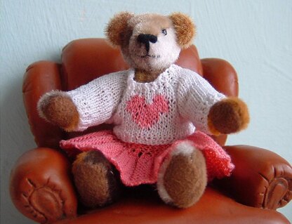 Pattern for Jumper with heart and pleated skirt (This pattern is designed to fit a 2.5 inch/6 cm bear)