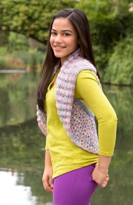 Teen Endless Circle Vest in Red Heart Boutique Unforgettable - LW3949 is a free Knitting pattern by Red Heart US, available as a Downloadable PDF and includes instructions in English. Super fun to make, this pattern could be your next masterpiece!