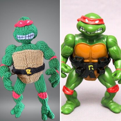 Cowabunga dudes! This pattern is a mix of in the round and flat knitting with seaming. You will need pipe cleaner or wire for poseability. There isn't an applicable gauge. Really fun to make!