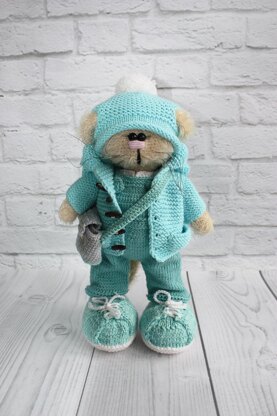 Convenience, brightness, and eccentricity is the style of teenagers. You may craft a bright, fashionable, brilliant image following this tutorial. This stylish youth outfit consists of: a fashionable overall with pockets, a stylish white shirt, a sporty warm hat decorated with a pompom at the end, a comfortable sneaker with white laces, a warm cozy jacket that completes the whole look. A large sport useful bag ends the style of a teenager. This pattern is easy. But it does not include instructions of the basic elements of knitting. You should know to crochet and knit. This tutorial consists of 32 pages and includes over 80 photographs. This set suits Bunny or Cat Doll (I have a tutorial & pattern of a cat doll in my collection) of 32 cm height + my advice and answers at any stage of the work. Please contact me with a message. Inspired by the idea of Bela Makaeva