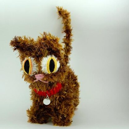 The body and head are knit on double pointed needles in one piece, with the eyes, ears, legs, and tail picked up and knit separately. Basic increases and decreases, as well as short rows, are used for shaping. Finished size depends on needle and yarn size, but the examples were knit on US size 3 double pointed needles and are approximately 6 inches long and 6 inches tall.