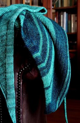 Telling Tales is knit sideways in one piece with a slip stitch border on one side. The triangular shape with its long ends and the wide middle part makes is so comfy to wear.