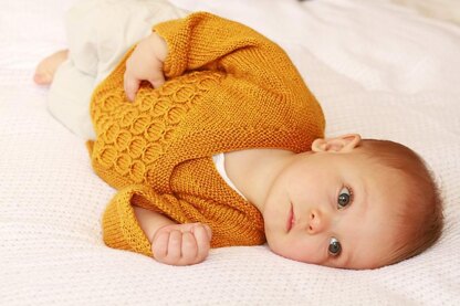 This adorable wrap jacket has a lovely stitch pattern.