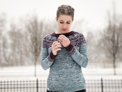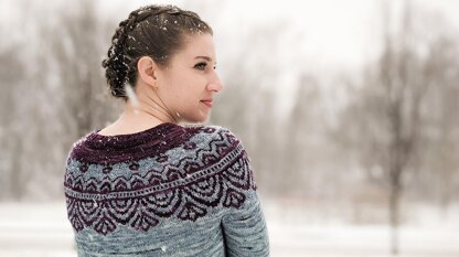 Tensia is a top-down, circular yoke sweater that is knit seamlessly. The relaxed fit with hourglass shaping and generous length makes for a wearable sweater that is effortlessly stylish. Or, skip the waist shaping for a more boxy, unisex fit. This garment is waiting for the perfect combination of colors. I chose colors for my sample that remind me of the hydrangeas (also known as hortensia) that my grandmother grows in her garden.