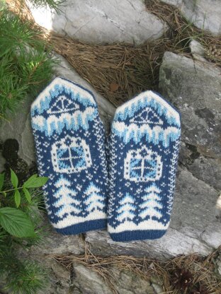A companion to my Teremok mitten pattern, Teremok in Winter features a little wooden house in a winter setting.