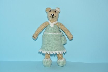 Tessa Teddy is a sweet little knitted teddy bear who stands at just 23cm or 9 inches. Pipe cleaners in Tessa’s body enable her to sit, or stand, or pose. What makes Tessa really special is she likes to dress up in different fun outfits. Tessa also likes to sleep in her very own special crib with a comfy mattress, a cosy blanket, and a pretty pillow. There are lots of photos and clear instructions in these patterns. This pattern includes Tessa The Teddy, her party dress, her shoes, and her hand bag. You can find lots of other patterns for Tessa Teddy in my store here: https://www.loveknitting.com/independent-designers/?designer_name=41011
