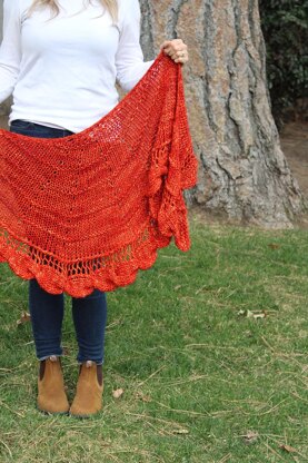 Tetherow is a timeless curved shawl with lace and a cable along the edge.