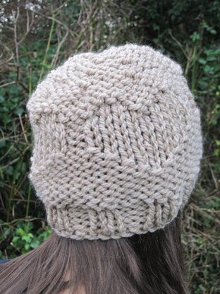 This hat knits up quickly in a lovely super chunky, wool mix yarn. It can be worn pulled down over your ears or further back on your head in a slouchy fashion! This is a detailed pdf knitting pattern with row by row written instructions, charts and photographs to help you. The hat is knit flat on two needles and seamed at the back.