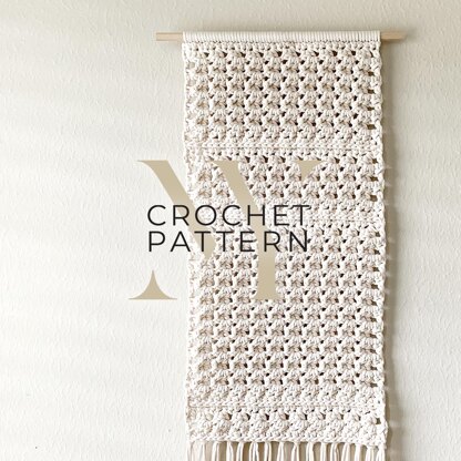 Yearning for the look and texture of macrame wall hangings but with crochet? Look no further than this one! Inspired by and designed to imitate alternating square knots in macrame, this special wall hanging has a unique look in various angles. Decorate your home with cozy texture!