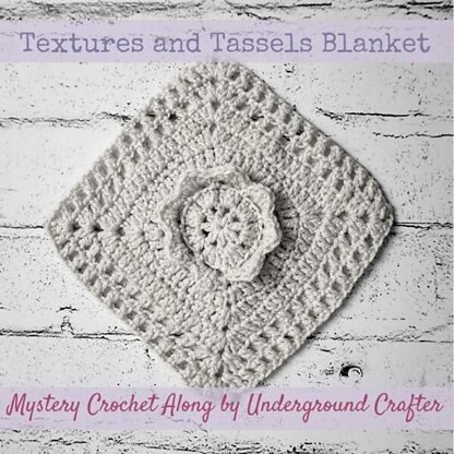 The Textures and Tassels Blanket is a mystery crochet along for a throw-sized blanket worked in a combination of motifs and rows. Borders are crocheted in the round and the blanket is finished off with tassels. (Optional, of course, if you don’t like tassels.) New clues were released on Fridays through December 10, 2021.
