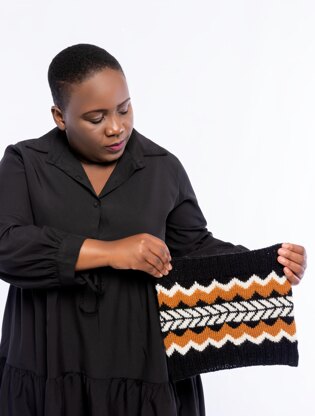 The Thabo Cowl is a three-colour cowl with an easy to knit Fair Isle chart. It knits up quickly in DK weight yarn and makes a lovely last-minute gift project.