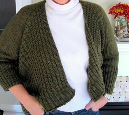 Thankful was inspired by the need for an easy to wear, yet flattering, quick knit sweater that could be tossed on whenever the chill strikes. An optional technique, called the “trick play,” to work the body of the sweater without purling has been included. Though the sweater is worked flat; a circular needle is needed if you want to use the “trick play” technique.