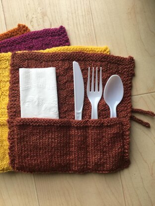 Go green with this reusable picnic silverware set! Make one from each skein of yarn and your picnic with come alive with color!