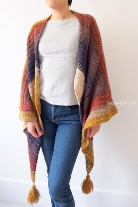 The Adirondack Wrap uses shapes and colors to create to a long, light and flowing wrap that can also be worn as a scarf. It’s deceptively simple design makes it perfect for on-the-go crocheting, watching-tv crocheting, and sip-and-stitch crocheting!