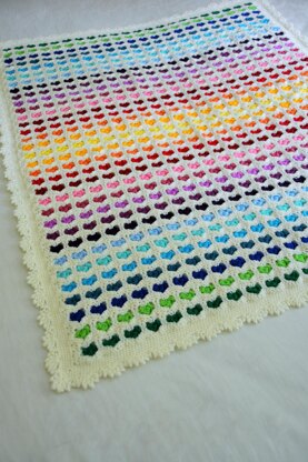 Full of rainbow love, this heart blanket has been designed with rows of colourful heart stitching finished off with a pretty lacy border. This blanket is reversible, either side makes a stunning display. This eye-catching blanket is a beautiful gift for both boys and girls, from young to old.