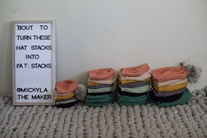 The Basic Market Beanie is the perfect solution to all of your craft prep needs! This patterns comes with instructions for 4 sizes; Newborn, Infant (6-18 months), Child, and Adult. The Basic Market Beanie works up quickly using a weight 5 yarn so its perfect for pumping out lots of stock!!