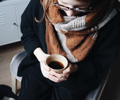 Materials: Ulysse by De Rerum Natura - Color A: caramel, 4 skeins - Color B: poivre et sel, 2 skeins - 3.00 mm needles/ US 3/ UK 11, I used circular needles so I have enough space to work the scarf. - Markers