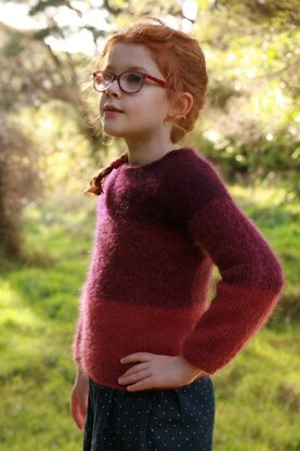 The Beekeeper’s Daughter is a light, soft jumper that makes a perfect layering garment for transitional weather. Worked in the round from the bottom up, the sleeves are worked separately (also in the round) and then joined at the yoke. The pattern calls for fine mohair yarn, of which 2 strands are held together throughout. This helps to create gentle colour changes across the jumper as it is worked. Use as many or as few colours as you like to create a jumper that is perfect for the person who will wear it.
