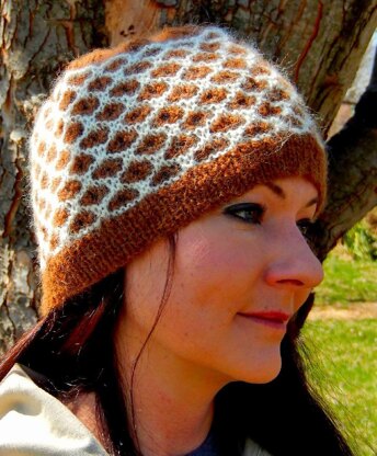 A very special thanks to Jackie Erickson-Schweitzer of HeartStrings FiberArts and her Honeycomb Shadow Lace Stole Pattern #H148 for the inspiration for this hat and for permission to use her stitch design to create this pattern. To see more of her beautiful designs, visit her website at www.heartstringsfiberarts.com.
