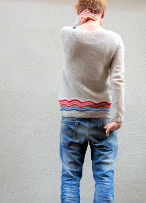 …the BERLIN KNITS sweater is worked seamlessly from the top down. The body is worked in garter st with cute old shale pattern stripes right before the bottom ribbing, sleeves are worked in St st. The neck is shaped by working short-rows back & forth. Then the yoke is worked in the round with raglan increases. When the yoke shaping is complete, the sleeve sts are placed on hold and the underarm sts are cast on, using your preferred cast on method. Then the body is worked in the round to the ribbing with an A-line shaping. Then sleeve sts are picked up again to work the sleeves top down in the round to the end. As this jumper is worked from the top down it is advisable to try it on from time to time to check the length & overall fit. The length & width of the yoke are easily adjustable by adding/ reducing increases, or adding/ reducing underarm sts.