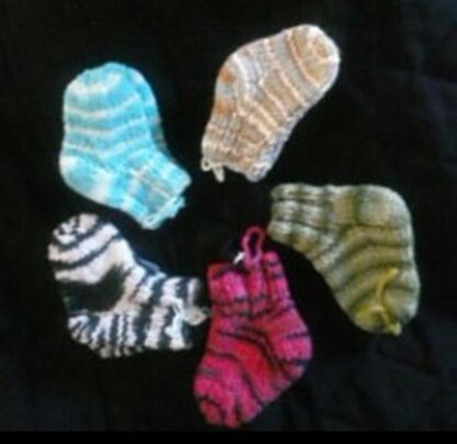 A Great Baby Gift! These little socks are a quick knit using Cascade fixation yarn which has a bit of stretch. They stay on little feet much better than most. They can also be made using any yarn of similar gauge, but beware-- a different yarn may change the finished product.