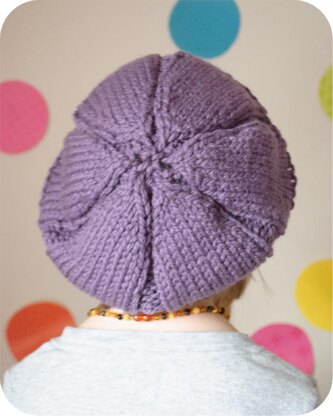 The Bloemblad Hat is a simple slouch hat with a flower petal design radiating from the top. Uniquely shaped petals are created from a simple knit and purl pattern. The wide, simple band is the perfect place for that oversized you've been holding on to! Variations given for a garter stitch band too.