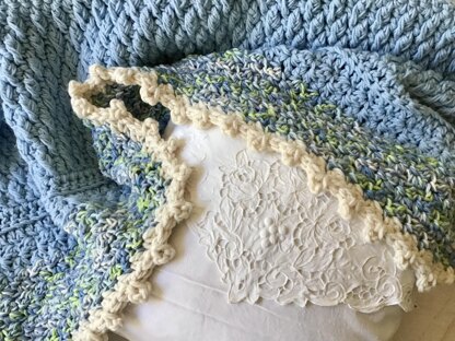 - White stash chunky yarn used for picot blanket edge.